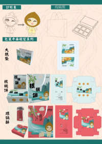 本作品以ip形象和核桃产品为主体,以自然山水画为背景,加入了IP形象、产品插画图、绿水、青山等元素,深刻体现了地域特色,以纯正、天然原生态、为理念,深受消费者喜爱,从而带动当地经济发展。