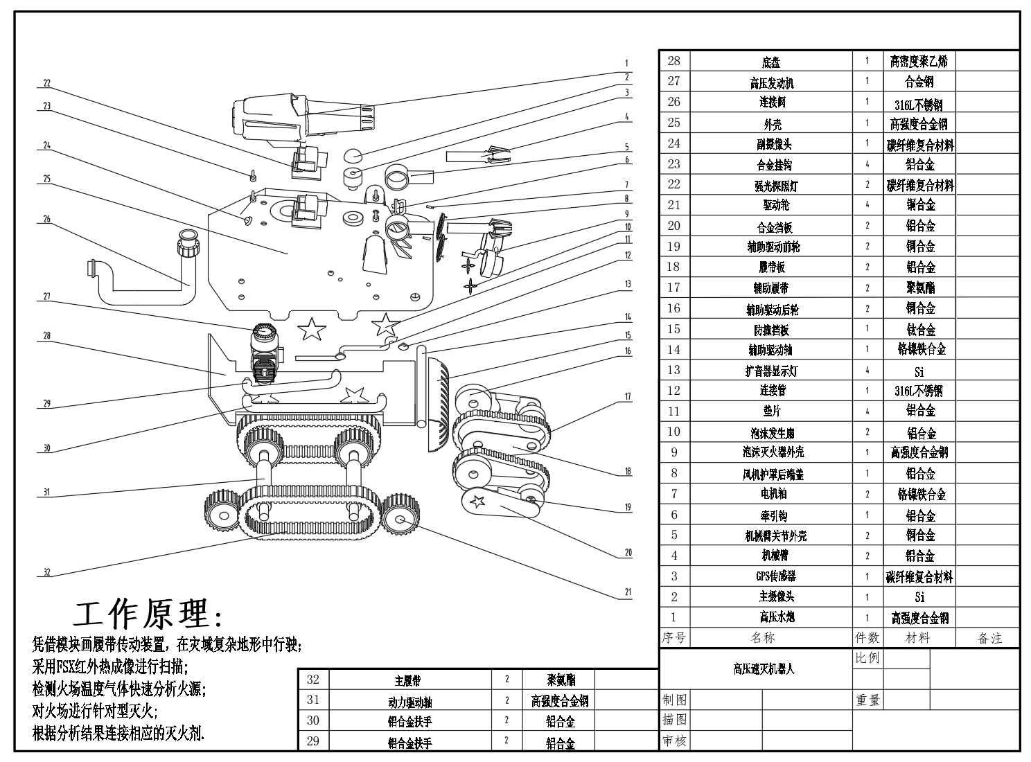 2. 移动系统设计:采用前置履带+后轮驱动的混合系统,增强山地、废墟等复杂地形的通过性。