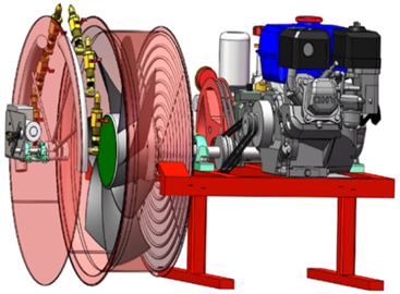 丘陵果园喷雾机将轨道牵引系统作为行进装置,它与远程控制系统相互配合,果农实现丘陵山地大范围远程遥控。摇摆系统、喷雾系统及风送系统是喷雾机植保作业的核心部件。
