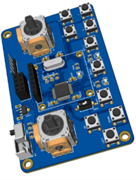 除了硬件上的创新,本机器人还配备了传感器和智能算法,能够进行实时的环境感知和数据分析。集成的超声波模块和视觉识别技术使得机器人能够精确探测周围障碍物并进行避障,确保任务执行过程中的高效性和安全性。通过单片机PCB设计完成控制,主控芯片采用stm32f03c8t6。机器主控板设计如图4所示,高度集成了所需的硬件功能。遥控装置PCB设计如图5所示,采用常见的手柄功能设计,易于上手操作。