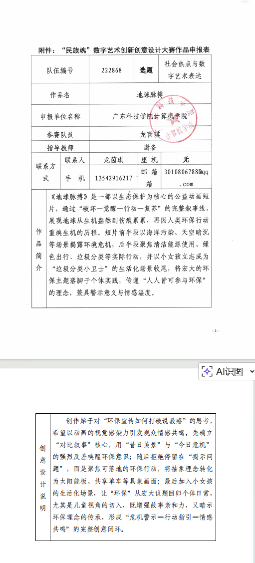 作品名称:地球脉搏 学校名称:广东科技学院 参赛队伍:从容应对 队伍编号:222868 参赛学生:龙茵琪 指导老师:谢备 投票日期:2025年10月10日 00:00->2025年12月15日 00:00 请在微信端进行投票。点此扫描二维码。