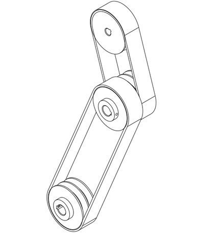 自走式路面垃圾清扫小车采用V带传动,可缓冲吸振,运行振动能被其弹性缓冲,减轻对动力源及部件损害;能过载保护,遇异物卡刷致负载突增时打滑避免电机等损坏;且结构和成本优势显著,带与带轮机械结构简易、成本低,普通V带价廉易购易换。V带机构二维图如图9所示: