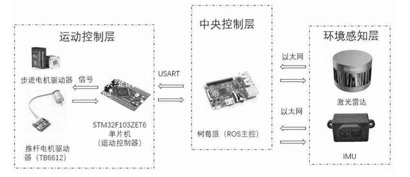 该系统的硬件系统主要由移动系统、IMU、3D激光雷达和树莓派(ROS主控)等组成,硬件系统框架如图15所示。