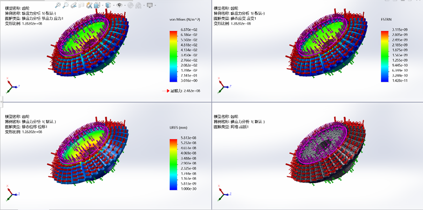 利用simulation软件对本装置上关键部件高速轴进行应力分析,应力分析结果显示各个部件在各种工况下的应力、变形以及安全系数等指标都满足预期设计要求,力学性能合理,能够保证其正常运行,符合该零部件设计的严格要求。