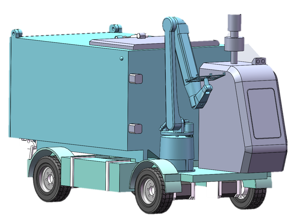 这款无人垃圾车的设计原理基于高度集成的自动化与智能感知系统。其核心是通过多传感器融合(激光雷达、视觉传感器、GPS)实现环境感知、精确定位和自主导航。控制系统作为大脑,依据传感器数据规划行驶与作业路径,并借助步进电机实现机械臂的毫米级精准控制,完成垃圾桶的抓取、提升、倾倒和归位全套动作。同时,通过红外测距传感器实时监控车厢与垃圾桶的满载状态,驱动任务决策。整车由大容量电池组驱动,并具备状态自检、远程监控及污水收集、自动消毒等辅助功能,从而实现全流程无人化、高效清洁的智能作业。