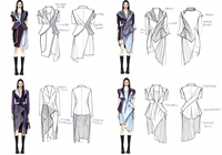 系列采用解构主义的廓形手法,对经典职业装的西装、裙装结构进行重组:
