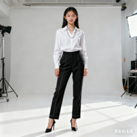 雾霾灰修身西装+白色真丝质感衬衫+藏青色A字半裙(女生款)/深灰西裤(男生款),面料挺括不易皱,日常打理便捷。衬衫领口微廓形设计避免紧绷,西装肩线采用微垫肩不压身,半裙长度及膝兼顾得体与活动度。整体配色沉稳不沉闷,细节处的珍珠纽扣(女生)、金属袖扣(男生)增添精致感,诠释“新人也有专业体面”。