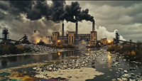 短片以 “美→殇→醒→传” 的叙事脉络展开:开篇,AI 镜头捕捉宇宙深处自转的蓝绿地球,将雨林晨露的晶莹、草原炊烟的闲适,化作触手可及的自然肌理;随之画风转折,工业阴霾的厚重、沙暴席卷的仓皇、冰川崩裂的震撼,通过 AI 算法对光影的精准渲染,放大生态危机的紧迫感。而当光伏板倒映湖光、全息屏勾勒蓝图,AI 技术又让科技环保的希望具象化,尤其聚焦社区河岸的群体行动 —— 老人扶苗的沉稳、孩童提水的雀跃,每一个动作细节都经手工打磨,让劳作的温度穿透像素。