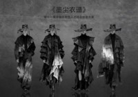 《墨尘衣谱》以中国非遗扎染为核心意象,把“破旧衣服”这种带有行旅感、保护感的传统外衣重新拆解、叠搭成一组偏现代感的黑白造型。系列统一用黑、灰、泛白的“墨尘”肌理,模拟扎染在布面自然晕开的痕迹,让每一件衣服都像被翻阅过多次的旧谱页。宽大的轮廓、层层碎片式下摆和不对称褶皱,借鉴古代披风、道袍、戏曲行头的结构,再用夸张肩线、超长衣长和工业感面料,把那种“披一身江湖气”的感觉拉到当代街头。宽檐帽延续竹笠与斗笠的形态,使人物在灰墙背景前像一排行走的墨影,强调“遮蔽脸孔、放大身体”的意思。本系列不做复刻版非遗,而是把扎染的随机性、手工痕迹转译成结构语言,让传统技艺从展柜里出来,在城市夜色中走动的“行走衣谱”。