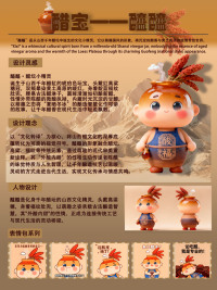 设计上,我进行了巧妙的符号融合:以古朴温润的醋坛为头部,象征文化的容器与岁月的沉淀;头顶鲜活的高粱穗点明核心原料,是对自然馈赠的致敬;脸颊上标志性的高原红,则汲取了山西的地域与人文特色。整体造型在萌趣之外,蕴含着深厚的文化语意。