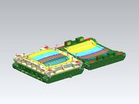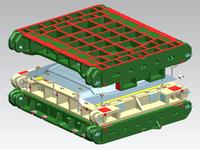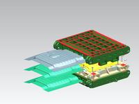 此套模具比一般的汽车顶盖模具有了一定的改进和创新。我们把原本的汽车顶盖模具拆分成多份,在把它们组合起来,这样就可以冲压单排、单排半以及双排的汽车顶盖拉延模了。
