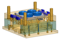 (3)以SolidWorks及插件IMOLD为平台对表盘盖进行型腔布局、分型面的设计、成型零件的设计、导入模架、脱模机构设计和侧向抽芯结构设计等。