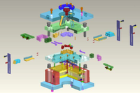 2、通过CAD软件、pro/e软件进行模具的布局、分型面的设计、成型零件的设计以及模架与相关标准件的加载。