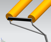 手柄杆与滚轴连杆之间用焊接的方式连接,其三角形构造是为了保证产品在使用时的稳定性。