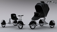 本实用新型提出了一种多功能儿童车,包括车支架,所述车支架一端安装有转向轴,所述转向轴下端安装有一个前轮挡泥板,所述前轮挡泥板下安装有前叉,所述前叉上安装有前轮,所述前叉上还安装有脚蹬,所述车支架另一端安装有两个后轮挡泥板,所述两个后轮挡泥板之间安装有后车架和刹车架,所述后车架两端位于两个后轮挡泥板内安装有后轮,作为婴儿推车使用时,则采用所述车支架上安装婴儿座椅,所述婴儿座椅椅背后面安装手扶装置的安装方式,作为脚踏车使用时,则采用所述转向轴上安装手扶装置,所述车支架上安装脚踏车座椅的安装方式,实现一键式转换,瞬间即可在婴儿推车和儿童脚踏车之间转换,节约了制造成本,延长了产品的生命周期。