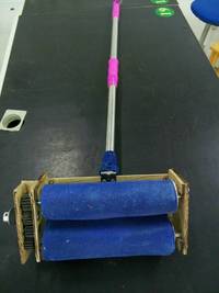 组装方式:将擦拭体S型缠绕在两个滚筒上,这样可以使擦拭体正反两个表面同时接触到被擦拭的物体(玻璃)。