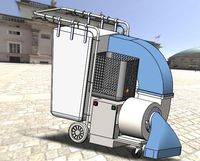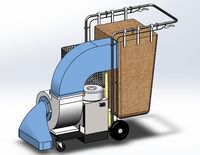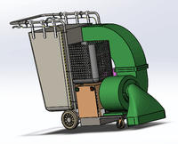 本设计落叶清扫机以蓄电池为动力源,依靠电机带动风机旋转,进而将落叶吸入清扫车落叶收集箱内。为了既能高效清扫路面上落叶,又能清扫路旁绿化带、不平角落处的落叶,采用不同的落叶吸入口。清扫机的前进主要靠人力推动,同时为了在上坡等处达到省力效果,还加入了后轮助力系统。制动系统分为行走过程中的刹车和停车时的手刹,刹车可以在下坡时很轻松的制动控制速度,手刹则可以保证清扫机在静止时不会移动保证使用安全。蓄电池方面,为了方便替换,提升工作效率,我们设置了简易的拆卸机构,便于操作。