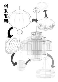 本作品是采用古代纸糊的灯笼,创新成现代的吊灯,采用古代灯笼的形态与现在铁艺技术相结合,形式多变,形态不变,相比之前的灯笼更安全(之前是用纸,竹子和蜡烛,现代是铁,玻璃,点)中国最早的吊灯工艺,形态和工艺材料上的继承和创新。