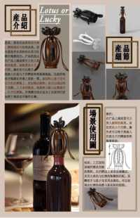顶端凹槽采用硬质塑料,在凹槽边上采用金属镶边,采用古典色与红酒的酝酿相匹配;花瓣把手与莲子壳采用金属色,可以显现出红酒的高雅与莲花相似相溶。