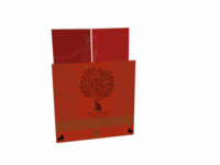 作品主要是由外包装封面,内部请柬卡片构成,形成了一个完整的邀请函。该封面图案采用的是汉代画像石上的木连理,也称连理木,木连理,王者德泽纯洽,八方同一,则木连理,在现在常用连理树作为团圆,爱情的象征,每页主要也是采用汉朝步瑶图案,古代女子皆喜好发簪,发簪也是身边的常备之物,将发簪比喻爱情,希望爱情像发簪一样永伴吾身。为了更加符合中国的传统婚礼庆典,请柬主要是采用中国的传统红,中式色彩比较浓厚,也采用了渐变暗金色作为封面花边的填充颜色,给婚礼一种高雅,大气的感觉,内页也采用折叠式翻页,增强了请柬的立体感,我采用的字体为当时汉朝所使用的小篆。