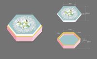 2.盒盖采用天空浅蓝色与百合色白色,代表着自然;糖盒盒盖应用特殊纸张进行磨砂半透明透明处理(白色条状)。