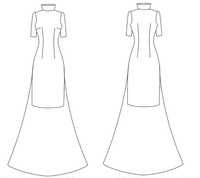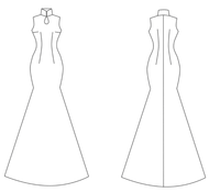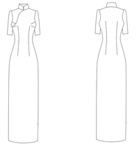 系列设计的灵感来源于女装礼服的设计,将礼服的设计点应用在旗袍上,使旗袍的款式不在如以往的简单、单调,在旗袍合体束身的基础上具有礼服的美观造型。包边条选择了面料上的黄色和绿色的蝴蝶颜色,与面料的颜色相呼应,包边可以说是旗袍的一大亮点,所以包边方式也是很讲究的,我们选择了两种包法,直角包边和圆角包边,变化中也达到相同效果!在加上面料的特点,在旗袍上更加的涌现出一种独有的韵味,将女性美展现的淋漓尽致。