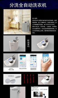 此款洗衣机主要是打破传统洗衣机的缺陷,发展创新思路,进入三桶新时代,衣服分类清洗,防止衣物细菌交叉感染,袜子内衣外衣分开洗,简单干净卫生,环保干净卫生,环保节能一省到底,可单桶洗也可多桶同时洗,洗衣机采用智能触屏控制,而且可采用智能app控制,随时随地控制家里的洗衣机。