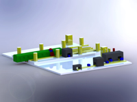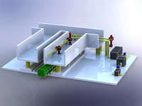 我们设计的系统主要包括了包装、识别、传送、分类、上架、装载、 输运、卸载等过程,而且全部都是自动实现,无需人力。整套系统中包括了安检设施、自动装箱装置、传送结构、分拣装置、悬挂链装载结构、火车环形存货装置和火车侧边滑板结构以及一些控制结构和身份识别设施等组成。