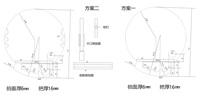 在标准指虎球拍的基础上改进的方案二的插板式指虎球拍在更换胶皮的方法上做又出了改进,采用插板-底板-插板的结构,插板与底板通过球拍底板上的卡口与卡口处的栓钉接连,独到之处是方便了更换胶皮以及在更换胶皮过程对底板做到了零损伤,并且可以在可更换式的插板上安装运动芯片,智能分析使用者打球时的习惯及拍面击球点的分布,令使用者的训练效果提升。