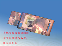 1.手机壳背面储物夹层存放比较薄的物品,如纸币、便签等。
