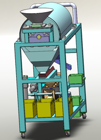 我们团队第一次参加这个比赛,对这个比赛充满了热忱,用心做好这个作品。我们用新思维来做出了这台硬币分离计数装置。用滚筒内置螺旋结构将各种币种传送出来,同时滚筒上有成螺旋的规格孔,可以使一块硬币分离出来并有规律地通过光电传感计数器计数出来。五毛和一毛的经过传送带依次掉入运动着的分离漏斗将一毛的分离出来,通过滑道并通过光电计数器把三种硬币的总数等计算出来,最后各币种滑入各自的储存装置。整个装置全部自动化实现硬币分离计数功能,用异步电动机和单片机来控制机器的运转,可以有调速功能,操作简便。