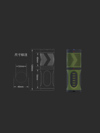 细节展示:充放电口是现如今常见的USB插口,位于手电筒底端,外有橡皮塞,可起到防水防尘作用。蓝牙音响位于手电筒的中上端,根据人体工程学的测试,音响部位与手柄留出了一定的位置,满足了两者之间互不干扰的条件。手柄位于手电筒的中下端,根据测量与实践,设计出了完美的大小尺寸,满足不同人手掌的大小,在功能上还特地设计出防滑的手柄,是舒适度与功能的完美结合。