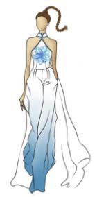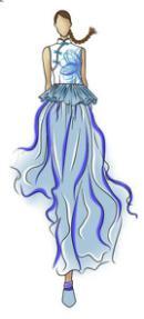 运用仿丝绸,营造飘逸灵动,亚光的质感。选用钉珠,来增加层次感。蓝色的印花,呼应主题留白。