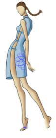 运用旗袍经典元素盘扣竖领以及包边,同时运用现代服饰中的分割以及风格元素,钉珠,网纱,裤装等来更好的结合实际。