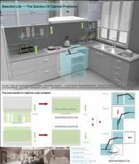 现如今各式各样的橱柜涌入我们的家庭中,但他们使用方式都很单一,并没有考虑到用户家庭的实际情况及需求,因此就会产生如物品归纳,拐角,高柜取物以及空间利用等问题。我们针对这一情况对橱柜进行改造设计,通过对橱柜各部分组件的自由组合以及各部分结构的变化去解决现在橱柜在实际生活中产生的问题。