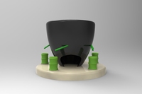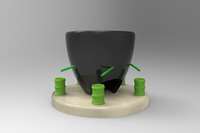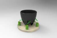这是一款茶壶和茶具相结合的,既能储存茶水,又可以泡茶且有杯子的茶具。这是一款仿生型茶壶,杯子仿照竹节的样式给予人一种大自然的清新感,这款茶壶不仅含有市面上茶壶应有的功能,而且在其基础上涵盖了一些新的形式及功能。首先是茶壶下的托盘设计,它使得茶具既有了整体感,又使茶具有了独立感。再者,茶盘上有凸起,当茶杯放于其上时可以让茶水流到杯中,移开时则停止。茶壶的外置导管可以拆卸下来作为吸管来使用,用户需要注意清洁。茶壶上部分是倒入茶水的空间,下面空心部分则可以放置茶杯,整个茶壶成杯装,从形态告诉用户这是泡茶喝水用的。这套茶壶是仿生设计,茶壶和茶杯采用陶瓷工艺制作,托盘则使用木质材料制作整体产品给予人一种置身于竹林之中,竹林品茗,脱俗出尘。