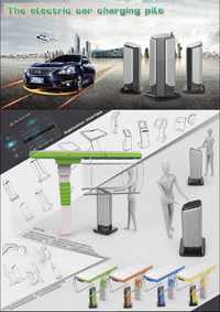 本电动汽车充电桩设计在功能上采用大数据和云服务,使用户可以随时进行数据的下载和传输,采用恒压限流和分阶段恒流的交流式充电方式使产品充电速率区分更明确,以适应不同的需求,对电源的多重保护使更安全更放心。造型上仿生大树的躯干,结合人机工程学、美学原理以及使用环境进行造型与色彩设计,具有科技感和亲切感。使用方式上,采用触摸屏幕让使用者使用更方便,体验高科技带来的新奇感。