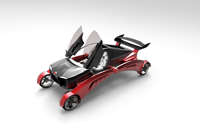 本作品设计了的一款可整体抬升的概念汽车,它可将整体车身抬升1.6米,轻松超过前方车身低的车辆,提高车库利用率,并可涉水行驶,更加便利。该抬升式概念汽车是基于机械手臂的原理而设计的。该汽车的四个车轮连接着四根机械臂,机械臂以车体中心的一根轴为旋转中心,通过旋转向中间靠拢,带动车体整体抬升。由于要将车体整个抬升,所以对机械手臂的强度刚度和车身整体重量要求较高,所以整体车身趋于轻量化,零件数量较少,并采用有机金属材质organo作为车内座椅靠背骨架,使座椅更轻便舒适。该作品设计思路为根据其功能推敲出产品造型,设计产品尺寸,最终实现其三维建模。