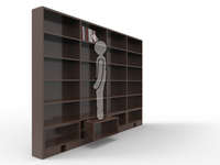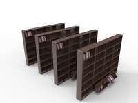 此款书架共分成六层、一层分成四部分。在最下一层的四部分中,每部分安装一个简易的机械结构。每部分另附一个操作开关。我们知道最下一层的书因为位置太低不易于我们取放,但是此款书架最下一层的每部分依靠机械机械结构可以移出来。我们只需用脚轻踢操作开关,最下层书架便可在可伸缩支撑杆作用下自动缓慢移。之后我们可以踩在上面,以便我们拿放最上一层的书籍。再向下踩操作开关,拉出来的那部分可以升高一段距离并向正对人的那面45度倾斜,我们无需蹲下便可以方便地查找最下面一层的书籍。相同的动作:先踩再轻踢操作开关便可以让最下一层书架回到原来的位置。