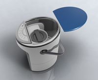 户外净水器在设计中,造型风格较为新颖、创新,采用独特的造型设计;在前方有一个出水口,使用时将顶部蓝色的开盖打开,取出内部的不锈钢取水器具进行户外取水,装满水后,再重新放入净水器内,接口对准后经过底部的紫外线发生器进行净化工作,水净化后进入另外一个存储洁净水源的不锈钢保温水箱。最后经过开关在前部出水口出水饮用,两侧有一个相连的提手可以进行户外携带,简单又便捷。在能源方面,机底有一个USB接口与汽车充电接口相连进行能源支持。不论晴天阴天,在充电完成后都可以将净水器提出进行户外净水工作。