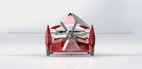 本设计中,两侧机翼可折叠,使用飞行模式时,飞机通过螺旋桨和滑翔翼实现空中飞行,驾驶员只需按下模式转换按钮,机翼便会自动展开,前轮驱动发动机转换为螺旋桨发动机,通过短距离滑跑后便可升空,提高了飞行爬升阶段的效率;着陆时,驾驶员同样按下模式转换按钮,机翼就会自动从根部和中间向机身后方折叠收起,发动机也自动转换成前驱发动机,飞机变成四轮汽车。本设计采用高性能减振底盘、高平尾和空气推进器,拥有堪比越野汽车的稳定性能。