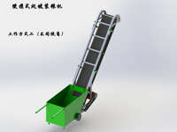 背景 我们团队的作品是“便携式爬坡装粮机”。根据现在农业发展的现状,都是以户为单位的生产劳动,这为大型农业机械的使用造成了困难,所以小型农用机械的发展尤为重要。当今随着生产水平的提高,农民大规模屯粮的时代已经过去,每年农村都有大量的粮食出售,但农村道路狭窄收粮车不易进入且粮食多为散装不易装车,所以急需一种散粮运输装车装置来解决人工装袋肩扛的问题。
