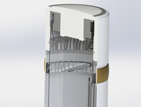 内胆外表面焊有螺旋滑轨结构,内胆和外壳都以锡焊的方式焊接导热铜块,通过旋转升降环来控制内胆的升降,从而带动内胆下端导热铜块和水杯杯壳底部的导热铜块相接触,实现热量从热水向外壳的转移,渐渐提高水杯外壳的温度。 杯身内侧安装有四个卡槽,用来固定内胆,防止其在升降的过程中发生左右偏移。两块导热铜块上都有90度的三角形沟槽,用来增大两个导热铜块的接触面积。