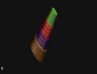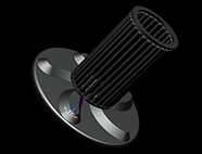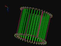 该洗衣机的整体结构主要包括机箱、原动旋转轴、波轮以及包围圆柱组合组成,其外围的包围圆柱组合由铰链连接,铰链被橡胶包裹,不会夹住被间的原动旋转轴旋转,在原动旋转轴上附着着一根根圆柱可以滚动,增加与衣物的摩擦,洗除污渍。同样在外围的圆柱组合上的圆柱也是可以进行旋转的。外围的圆柱组合进行铰接可以进行收缩扩张活动,并且通过弹簧与机箱进行固定。当原动旋转轴旋转时,下涡轮叶片搅动水流,使水与衣物充分混合,并且涡轮上滚柱可带动衣物一块运动。位于原动旋转轴和外围圆柱组合间的空间较小,且与外围的圆柱配合挤压衣物,模仿人手工揉洗衣物的动作,强效去除污渍。