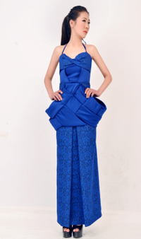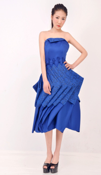 服装以中国结的编制方法、拼接等具有中国特色的设计手法来表现服装造型。服装造型简洁、线条流畅,并且服装是通过重新拼接在一起的设计手法让服装的每个部分都是完整而又可以独立存在的个体,可以拿出来重新搭配,已达到不同的效果。