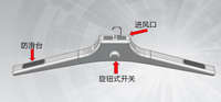 便携式烘干晾衣架尺寸小,安装方便,同时两臂可以拆卸,便于携带。使用时将烘干晾衣架挂到屋内并连接电源线即可使用,同时干衣时热(冷)风从衣服内部流动,更容易使衣服干透。便携式烘干晾衣架在上端开设进风口,在低端开设出风口。使用热风干衣时顺势针旋转开关旋钮,出风口将出热风进行干衣;使用冷风干衣时逆时针旋转开关旋钮,出风口将出冷风进行干衣。通过旋转旋钮还可以调节风量的大小。