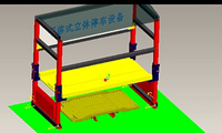此停车设备的结构简单、操作容易,安全可靠,存、取车动作简单、效率高。带有地轨,在地轨上平移,平移过程平稳;二层台板支撑结构为框架式结构,结构稳定,安全可靠性强;推移装置采用液压驱动,噪音小,安全可靠;提升装置为单电机四点提升,升降过程平稳,同步性稳定性好;既能单独使用,也能成组成排使用,使用方式灵活;能在小区、广场、学校、道路两旁等多种不同的环境中应用,环境适用性强;台板平移主动载车,无需更改汽车的行驶方向即可实现存、取车,存、取车过程简单快速,能为车主节约大量的存、取车时间;整个设备由平移和升降两个动作的配合即能完成立体存、取车,动作简单,可靠。