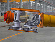 机械臂分为主机械臂与副机械臂,中间用可转动装置连接,住机械臂由动力支撑杆和安全杆组成,安全性大大提高,副机械臂可根据实际应用不同加装各种部件,通用性强。末端转头通过伞齿轮结构改变转向,使得机械臂活动更加灵活,与普通机械臂而言灵活度大大提高。
