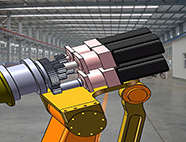 可移动六轴联动机器人,通过六轴机械手臂联动,可实现360度自由控制。在末端设有接口,可与其他机器进行扩展应用。机器工作时,由机械臂完成对零件的加工工作以及相应设备的扩展连接,底部运动装置为产品输送以及加工时方位变换提供帮助。