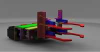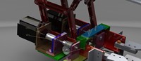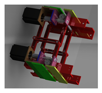 本产品自适应智能爬树机器人结构属于并联机器人结构,整体结构分为上平台、下平台与链接上下两平台的两条支链组成,共有四台步进电机控制。仿照动物毛虫的爬树时的躯干动作,使用多个四边形机构进行铰接来仿照毛虫的攀爬姿势。两条支链分别有两个平行四边形结构铰接而成,两条支链由两台电机控制,利用平行四边形对边始终平行的特点来固定抱紧机构,利用平行四边形不稳定的特点来实现伸缩,多个四边形结构进行铰接可以使抱紧机构进行非同轴运动,实现可以攀爬有一定弯曲程度的杆 。上平台与下平台均固定有抱紧机构,每一抱紧机构均有一台电机控制,可以在攀爬时实现抱紧杆,并且两个抱紧机构形成对称受力结构,可以很稳定地抓握树干。采用涡轮蜗杆与链条传动,相较于原先设计的齿轮传动结构,链条传动可靠性好,可以灵活调节链轮位置以使其有效传动。采用涡轮蜗杆传动,还有一点好处是,便于加大力矩,充分减轻了电机的重量,这一点十分重要,因为机器人许多部件采用了钢材,自重较大,若能实现机器人的轻量化。必定可以使攀爬效率提升。